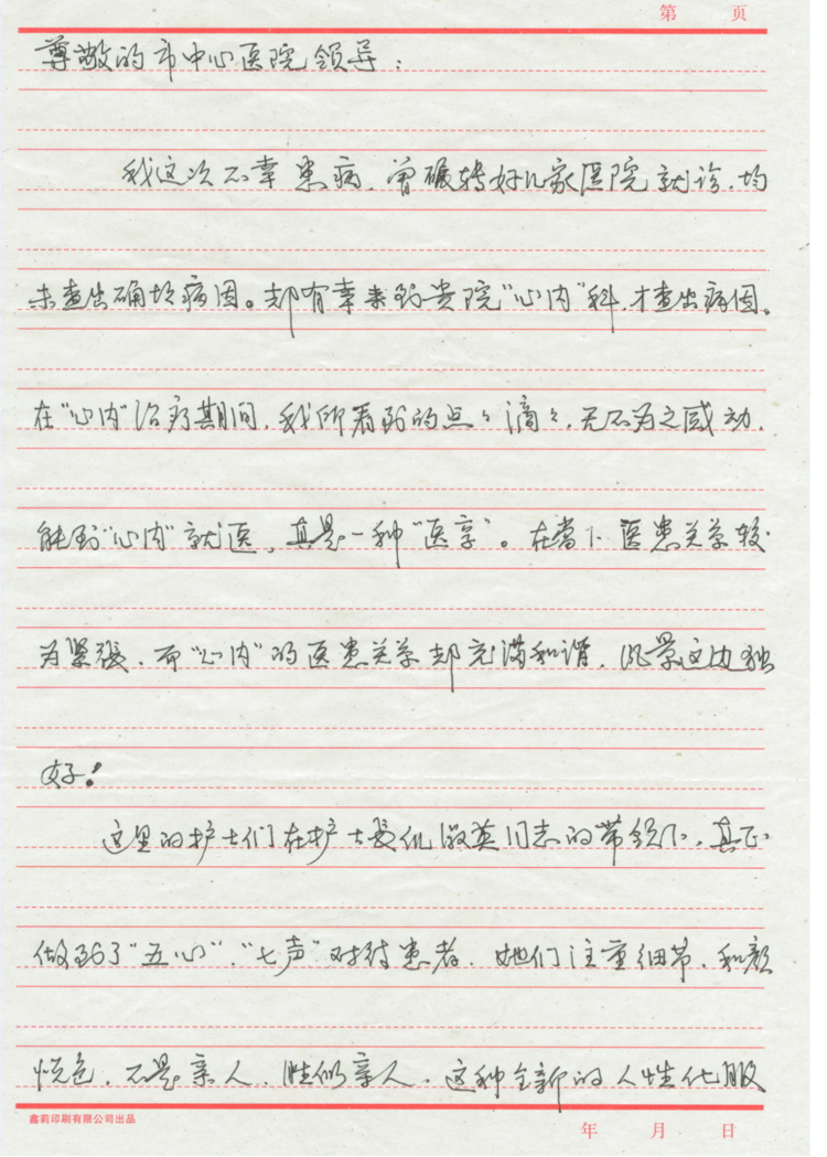 心內(nèi)科24床莫叢菊的一封感謝信