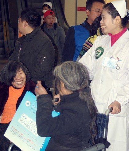 空巢老人免費體檢活動 發(fā)布時間:2009年12月7日 預(yù)覽:4281次 “空巢老人”免費體檢活動 12月5日我院與紅網(wǎng)衡陽義工聯(lián)合發(fā)起“關(guān)注孤寡老人”活動,十位貧困的“空巢老人”在院團委及義工聯(lián)的陪同下在我院免費體檢。該次活動以“感恩社會、老吾老及人之老為主題”,老人們分別進行了血液化驗、B超、心電圖等項目的檢查,隨后在我院食堂吃早餐并接收日用醫(yī)藥禮包?;顒託夥杖谇?,老人臉上露出了欣喜的笑容。(劉博) 護士為老人認真做檢查 向老人發(fā)放禮包 開心的老人 活動合影 紅網(wǎng)召集置頂帖:http://bbs.rednet.cn/a/a.asp?B=70&ID=21027997&q=1&r=3060134&T=0&107660746=2720928299紅網(wǎng)圖片報道貼http://bbs.rednet.cn/a/a.asp?B=70&ID=21091497