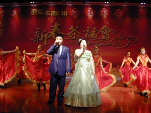 我院參加衛(wèi)生系統(tǒng)新春茶話會 發(fā)布時間:2010年2月10日 預(yù)覽:3656次 我院參加衛(wèi)生系統(tǒng)新春茶話會 2010年2月9日,為了感謝一年來上級領(lǐng)導(dǎo)對衛(wèi)生系統(tǒng)的關(guān)心和支持,展示醫(yī)務(wù)人員的風(fēng)采,活躍職工的文化生活,衡陽市衛(wèi)生系統(tǒng)金珠云頂大酒樓舉行了隆重的迎新春茶話會,大家歡聚一堂,以“健康仁愛和諧”為主題,我院工會組織14位職工演員表演了歌伴舞《我和我的祖國》,在這次茶話會上,我院榮獲市衛(wèi)生局授予的2009年度“領(lǐng)導(dǎo)班子先進(jìn)集體”光榮稱號。圖/文:張永明