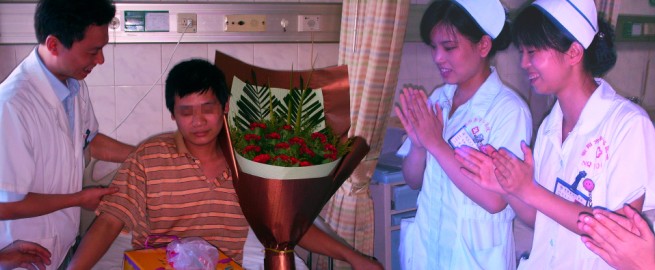 這樣的情景經(jīng)常在骨科上演。骨科從2008年至今始終堅(jiān)持細(xì)節(jié)服務(wù),共為病人慶祝生日30余次。自從醫(yī)院號(hào)召開展“ 感動(dòng)服務(wù),溫馨家園”、“構(gòu)建和諧醫(yī)患關(guān)系”以來,骨科主任及護(hù)士長高度重視對(duì)病人的人文關(guān)懷、心理溝通和舒適護(hù)理。記住每個(gè)病人的生日,和病人一起分享快樂,已經(jīng)成為他們工作的一部分;把病人當(dāng)朋友相處,當(dāng)親人看待是他們的行醫(yī)準(zhǔn)則。他們不僅是生命的守護(hù)神,更是人間真情的傳遞者。(易曉科)