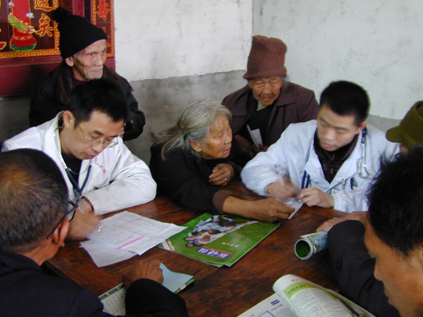 這次下鄉(xiāng)走訪,既是為民服務,也是健康普查,通過對幾個村的義診調(diào)研,認為在農(nóng)村生活規(guī)律不正常,患心腦血管疾病的高發(fā)率比較多,山區(qū)就醫(yī)不方便,小病硬撐,大病治療為時已晚,缺醫(yī)少藥的現(xiàn)象非常嚴重,這次義診所帶藥品有限,心血管主任醫(yī)師、副院長劉小平認為下來一次不容易,還花錢在祁東縣城藥店購買了不少這方面治療藥,以保證對癥有藥可發(fā),之后下鄉(xiāng)對義診藥品又進行了調(diào)整。農(nóng)村強體力勞動造成肩椎腰積勞成疾也非常普遍,對此專家們提出了合理化建議和應對措施。