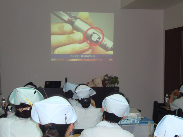 我院糖尿病??谱o理組舉行第一次糖尿病知識培訓 發(fā)布時間:2011年6月3日 預覽:4301次 我院糖尿病??谱o理組舉行第一次糖尿病知識培訓 隨著人們生活水平的提高,糖尿病發(fā)病率日益增長,文獻報告,約有10%的住院病人合并有糖尿病。為使在其他專科住院的糖尿病患者得到糖尿病??普疹?,避免不正確的誤治或錯誤的指導,減少糖尿病患者過早地發(fā)生并發(fā)癥,我院于5月成立了26名聯(lián)絡護士組成的糖尿病??谱o理小組,小組由各臨床科室選拔1名優(yōu)秀護士組成,糖尿病小組定期對所有聯(lián)絡員進行培訓考核,各聯(lián)絡員接受培訓后在自已所在病區(qū)指導解決本病區(qū)護士不能解決的糖尿病護理問題,起到以點帶面作用,如果聯(lián)絡員解決不了的問題直接向糖尿病強化治療中心提出會診申請。糖尿病??谱o理小組的成立,是護理部遵循“以病人為中心,以質量為核心”準則的又一體現(xiàn),進一步提高了護理服務內涵質量。 5月27日下午,糖尿病??谱o理小組舉行了第一次的糖尿病知識培訓。培訓內容為“胰島素的治療與諾和筆3、4注射技巧”,由我院糖尿病專科護士的劉丹主講。劉丹為聯(lián)絡護士們介紹了胰島素的一般知識、胰島素治療的常見認識誤區(qū)、胰島素治療的適應癥、不良反應、胰島素治療的種類以及的諾和筆3、4注射知識并配合視頻演示。理論與操作實踐相結合,使大家對胰島素有了更進一步的認識,對諾和筆3、4的使用及注射更加熟練。課后,大家就臨床工作中遇到的疑問進行熱烈地討論,許多人對這種糖尿病知識培訓深感興趣,認為參加糖尿病知識培訓,彌補了非??谱o理人員的糖尿病知識局限,在日常護理中能更好地開展工作,提高了護理質量,真正讓患者受益。 護理部 2011-5-31