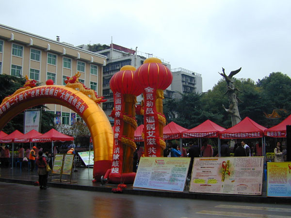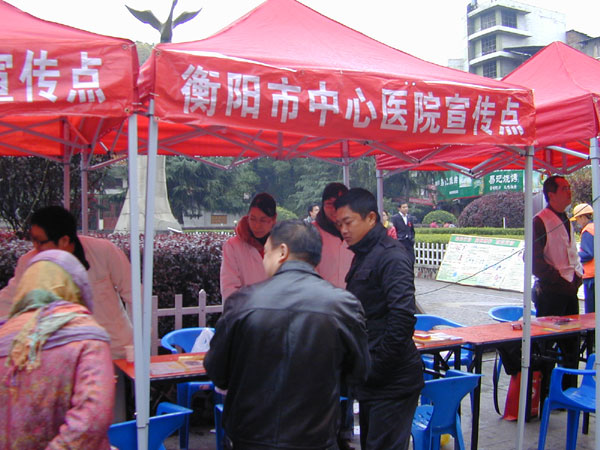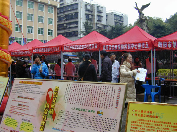 遏制艾滋,呵護生命 發(fā)布時間:2011年12月2日 預(yù)覽:2825次 遏制艾滋 呵護生命 2011年12月1日,第二十四個“世界艾滋病日”,衡陽市衛(wèi)生局組織了衡陽市紅十字會、市區(qū)疾控中心、市中心醫(yī)院等12家醫(yī)療單位冒著陰雨寒冷的天氣在雁峰公園旁舉行了大型的宣傳活動,制作了16塊圖文并茂易懂耐看的宣傳版,發(fā)放了艾滋病防治健康教育“五個一工程”供大眾閱讀的8種資料近1萬份,還發(fā)放了藥物和安全套,義診咨詢3000余人次。同時市區(qū)各大醫(yī)院在門診也開展相關(guān)的宣傳活動。 圖/文:衡陽市中心醫(yī)院門診辦張永明