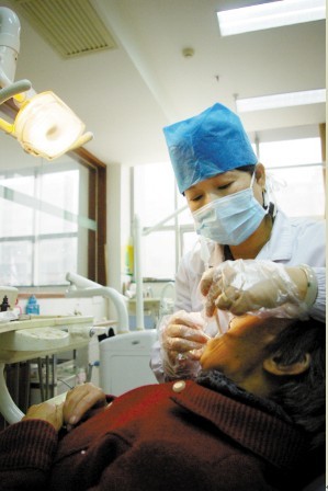 11月10日,初冬寒風(fēng)在市中心醫(yī)院窗外囂張跋扈,透過(guò)窗,幾名牙科醫(yī)師正在忙碌地為牙疾患者治療。