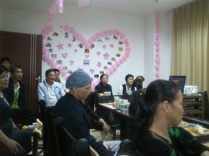 為開好這次會議,科主任唐玉成和護(hù)士長易曉科高度重視﹑精心準(zhǔn)備。他們給每名患者派送了邀請函,發(fā)放科室名片,既體現(xiàn)出對病友的無限尊敬,又架起了醫(yī)患溝通的橋梁。盡管這樣的會議經(jīng)常召開,但科室的每個(gè)醫(yī)護(hù)人員都投入了十二分的熱情。布置會場﹑準(zhǔn)備課件﹑采購禮品﹑征集病人留言等,醫(yī)護(hù)人員各司其職。病友也是翹首期盼,踴躍參與,有的當(dāng)參謀,有的幫忙吹氣球……。護(hù)士李倩心靈手巧,別出心裁地布置了精美的文化墻:粉紅的氣球拼成了巨大的“愛心”,“愛心”中央是腫內(nèi)一區(qū)全家福,四周圍繞著病人的寶貴留言,有的是樹葉形狀,有的成圓形,一句句真誠的感謝是對腫瘤一區(qū)工作的最高獎(jiǎng)賞,一張張陽光般燦爛的笑臉彰顯著天使的魅力和對未來的憧憬……。文化墻中融入了病人心聲和天使風(fēng)采,彰顯著無限的溫馨和快樂。