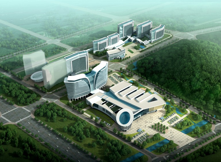 圖為市中心醫(yī)院異地?cái)U(kuò)建新院鳥(niǎo)瞰圖