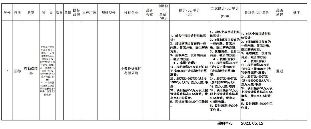 衡陽市中心醫(yī)院2023.6.12院內(nèi)招標(biāo)議價結(jié)果公示