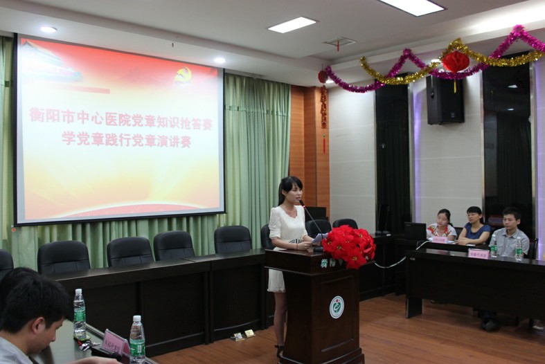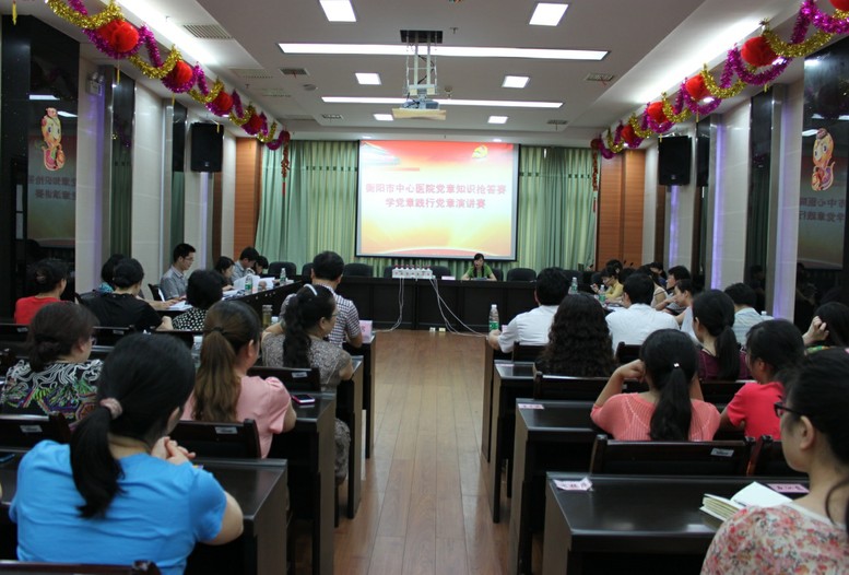 我院舉行黨章知識搶答賽和學(xué)黨章踐行黨章演講賽 發(fā)布時間:2013年5月30日 預(yù)覽:2681次 5月29日下午,我院在21樓小會議室隆重舉行了黨章知識搶答賽和學(xué)黨章踐行黨章演講賽。 此次比賽分為二個環(huán)節(jié)。第一個環(huán)節(jié)是黨章知識搶答賽,共有5個支部代表隊參加;第二個環(huán)節(jié)是學(xué)黨章踐行黨章演講賽,由各支部派選的6名隊員參加。 黨章知識搶答賽環(huán)節(jié)中,各代表隊踴躍答題,比分交錯上揚,現(xiàn)場氣氛熱烈,觀眾掌聲不斷;演講賽環(huán)節(jié)中,參賽選手精神飽滿、激情飛揚的演講,深刻表達了我院廣大黨員干部對黨章的學(xué)習(xí)理解和踐行新黨章的決心和信心。 經(jīng)過近2個小時的激烈角逐,最終,內(nèi)科支部獲得黨章知識搶答賽第一名,機關(guān)支部王穎超獲得學(xué)黨章踐行黨章演講賽桂冠。 此次競賽得到了院黨委的高度重視,黨政辦精心組織,院領(lǐng)導(dǎo)親臨現(xiàn)場觀摩并擔任本次比賽的評委。通過競答賽活動,進一步增強我院黨員干部認真學(xué)習(xí)黨章、模范遵守黨章、切實貫徹黨章、全力維護黨章的自覺性和責任感。 (文:冷曉君/圖:李志輝)