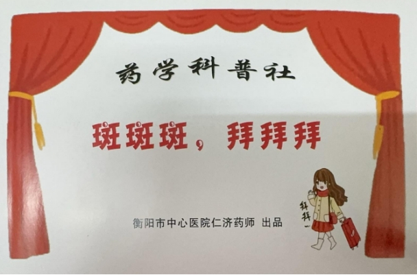 藥學(xué)部臨床藥師陳穎創(chuàng)作的科普?qǐng)D文《斑斑斑,拜拜拜》在本次比賽中喜獲圖冊(cè)類二等獎(jiǎng),該作品以相聲漫畫的形式,用幽默風(fēng)趣、通俗易懂的語言,向大眾科普了“祛斑屆新寵”氨甲環(huán)酸的用藥注意事項(xiàng),并倡導(dǎo)合理用藥。