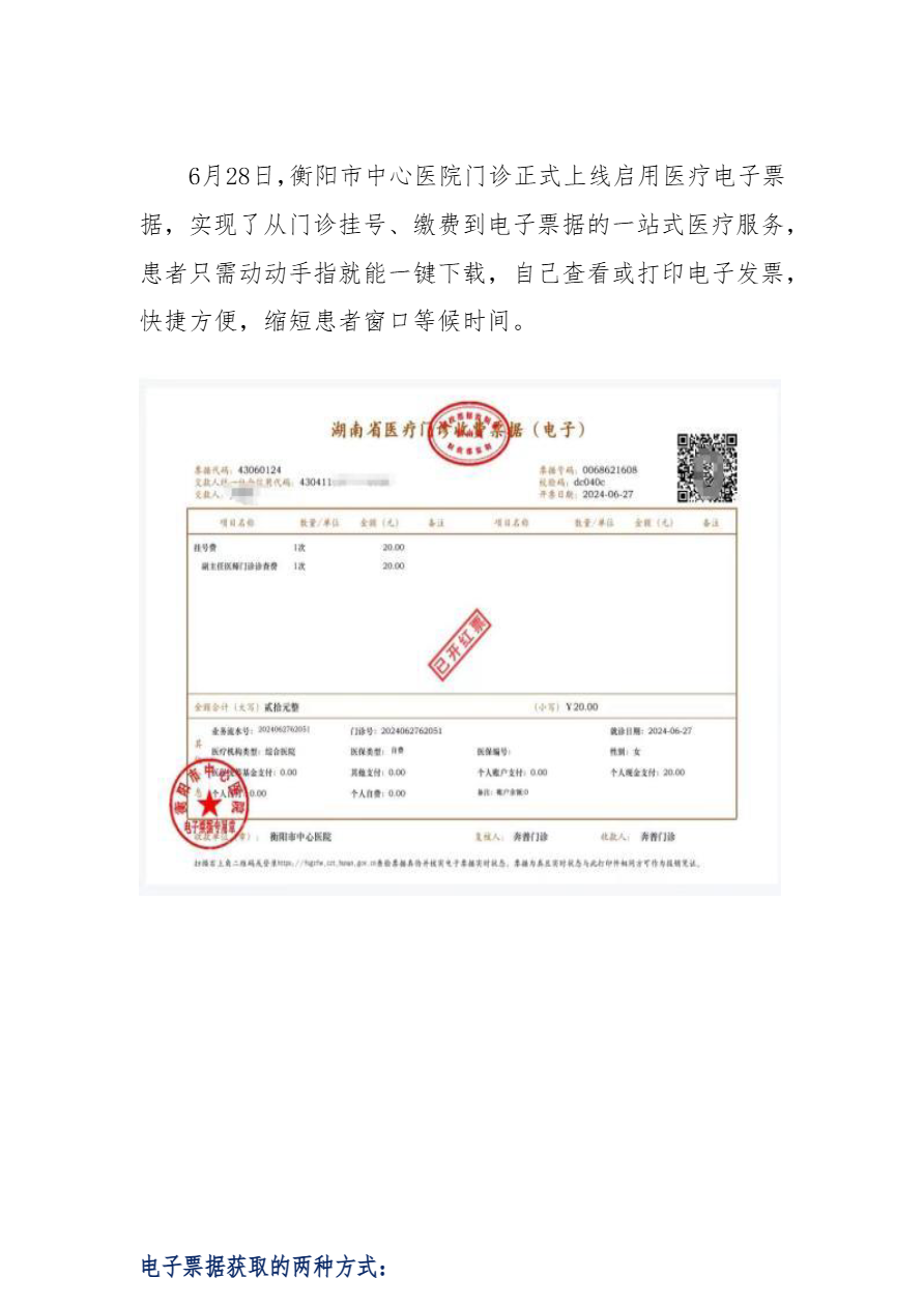 改善門診患者就醫(yī)體驗(yàn)系列報(bào)道(二)門診醫(yī)療收費(fèi)電子票據(jù)的推行 發(fā)布時(shí)間:2024年07月11日 10:35:22 預(yù)覽:1527次