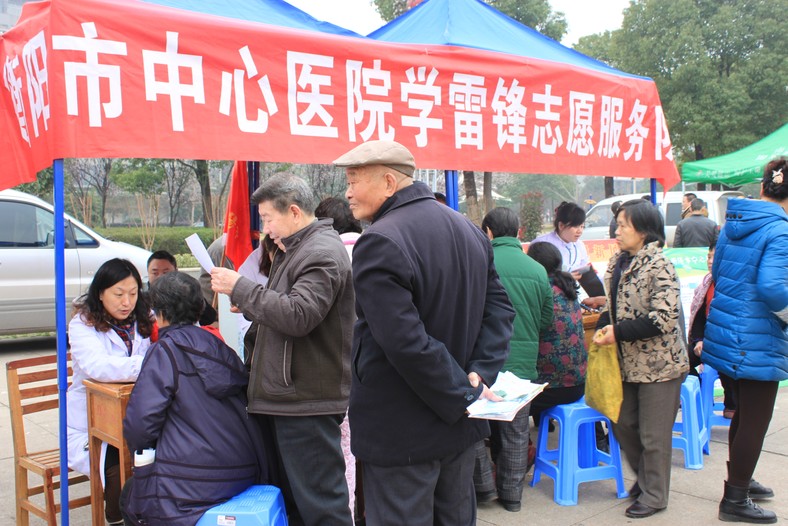 學(xué)習(xí)雷鋒,我們一直在路上 發(fā)布時(shí)間:2014年3月6日 預(yù)覽:2602次 學(xué)習(xí)雷鋒,我們一直在路上 三月,和煦的春風(fēng)吹響了學(xué)習(xí)雷鋒的號(hào)角,也召喚了我市“弘揚(yáng)雷鋒精神、構(gòu)建幸福衡陽”系列志愿者服務(wù)活動(dòng)的正式啟動(dòng)。 3月5日,我院“學(xué)雷鋒”志愿者們?cè)诠?huì)主席蔡春香的帶領(lǐng)下,帶著濃濃愛心和滿腔熱情來到太陽廣場(chǎng),參加由市委組織部、市文明辦組織的“弘揚(yáng)雷鋒精神、構(gòu)建幸福衡陽”系列志愿者服務(wù)活動(dòng)。志愿者們?cè)趶V場(chǎng)中央“安營(yíng)扎寨”,撐開了帳篷、擺上了桌椅、備好了藥品、支起了展板,給廣大市民們帶來了暖暖的愛心義診服務(wù)。他們悉心地為前來咨詢的市民們測(cè)血壓、量體溫、開處方,耐心地給他們講解疾病預(yù)防和健康養(yǎng)生等方面的知識(shí)。整個(gè)上午大家忙得不亦樂乎,義診現(xiàn)場(chǎng)免費(fèi)送出藥品價(jià)值3000余元、發(fā)放健康宣教資料200余冊(cè),得到了廣大市民的連聲稱贊。 據(jù)悉,為大力弘揚(yáng)雷鋒精神,促使學(xué)習(xí)雷鋒的常態(tài)化,我院還將陸續(xù)開展“大走訪”、送醫(yī)送藥下基層、無償獻(xiàn)血等一系列志愿服務(wù)活動(dòng)。學(xué)習(xí)雷鋒,我院志愿者們一直都在路上。他們默默無聞地奮戰(zhàn)在工作崗位上,用實(shí)際行動(dòng)踐行著雷鋒精神,使為人民群眾服務(wù)的奉獻(xiàn)之風(fēng)吹遍了醫(yī)院的每一個(gè)角落,感染著每一位員工。 (王穎超)