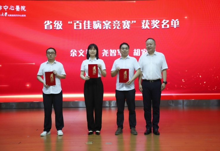 王琪、王靜、龍會、劉一笑、劉?,?、許欣、楊彪、陳小花、趙麗萍、徐正美、龔衛(wèi)東、庾江東榮獲市級“百佳病案”優(yōu)秀獎,工會主席周素英為院級獲獎人員頒獎;馬克強(qiáng)、盧鋒、凌云、馮朝霞、方超榮獲市級“百佳病案”優(yōu)秀獎,院長尹軍為市級獲獎人員頒獎;余文舉、堯智軍、胡家麗榮獲省級“百佳病案”競賽優(yōu)秀獎,黨委書記申惠龍為省級獲獎人員頒獎。