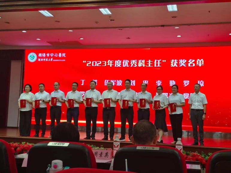 丁菁、伍軍波、劉平、李勤、羅瓊、羅湘平、蔣水平、譚滇湘、譚曙光、黎婷婷榮獲“2023年度優(yōu)秀科主任”榮譽(yù)稱號。黨委委員、副院長羅曉波為獲獎人員頒獎。