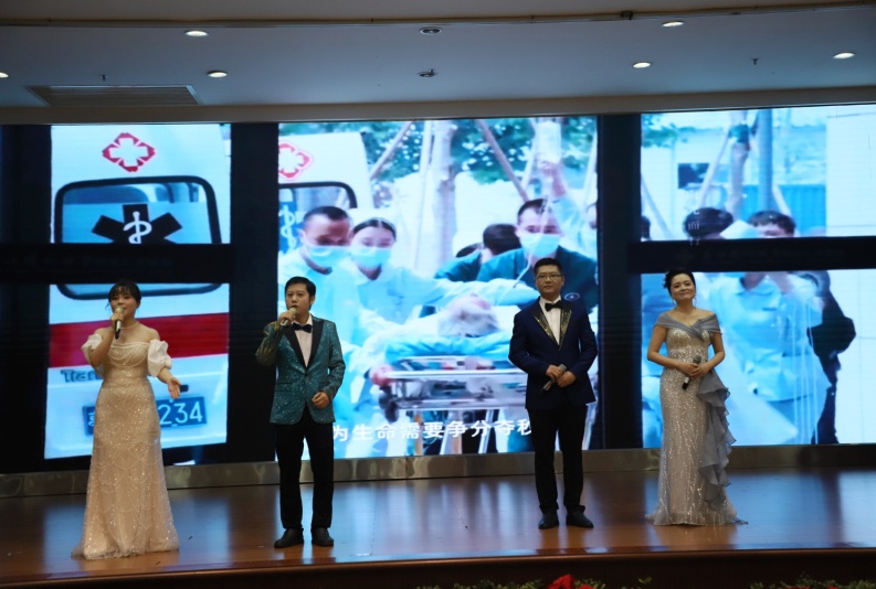 腎內(nèi)一病區(qū)主任譚偉等4人帶來了歌曲表演《向光而行》,都以悠揚(yáng)的旋律和深情的歌詞,訴說著每一位醫(yī)護(hù)人員心中對生命的敬畏,對使命的執(zhí)著。