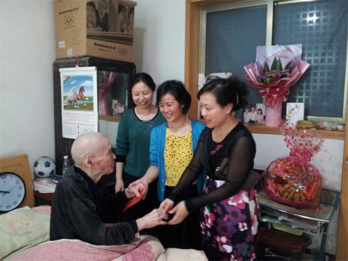 百歲老人慶生日 發(fā)布時(shí)間:2014年4月18日 預(yù)覽:2530次 百歲老人慶生日 領(lǐng)導(dǎo)慰問(wèn)送祝福 近日,我院工會(huì)主席蔡春香、紀(jì)委書記周素英帶領(lǐng)黨政辦、退休支部負(fù)責(zé)人一行來(lái)到退休老職工、百歲老人楊先蝶家中,為他送上生日祝福和慰問(wèn)。 在楊老家中,院領(lǐng)導(dǎo)關(guān)切的詢問(wèn)老人的生活起居、身體狀況,為老人送上了生日禮物和慰問(wèn)金,并祝愿老人生日快樂(lè)、健康長(zhǎng)壽。楊老當(dāng)天精神抖擻、喜氣洋洋,對(duì)醫(yī)院的關(guān)懷和慰問(wèn)表示感謝! 楊老兒女們表示:尊老愛老是中華民族傳統(tǒng)美德,在往后的日子里將繼續(xù)盡心盡力照顧老人,讓他的晚年更加幸福。 (冷曉君)