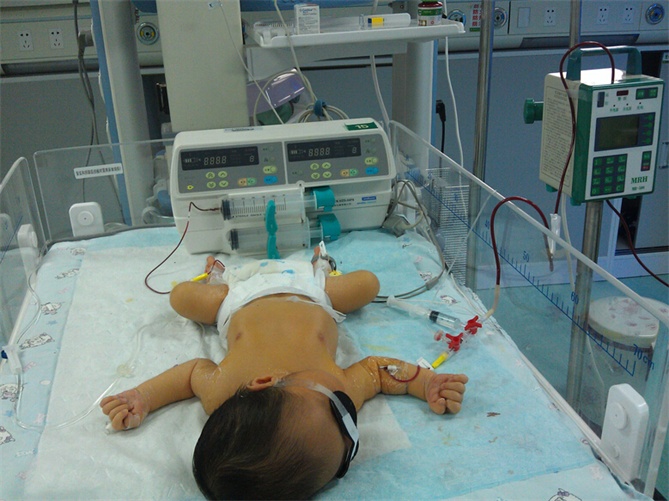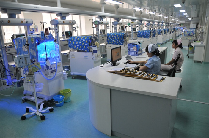 在衡陽(yáng)市中心醫(yī)院婦兒中心,新生兒重癥監(jiān)護(hù)病房有30張床位,分為3個(gè)區(qū):早產(chǎn)兒區(qū)、足月兒區(qū)及康復(fù)區(qū),每個(gè)區(qū)各由一名責(zé)任護(hù)士主管。病區(qū)配備心電監(jiān)護(hù)儀、遠(yuǎn)紅外線輻射臺(tái)、藍(lán)光治療箱/儀、呼吸機(jī)、空氧混合儀等設(shè)備。
