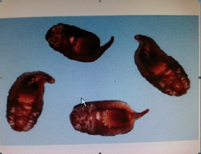 患者貪吃生魚片 肝內(nèi)長出數(shù)條小蟲 發(fā)布時間:2015年9月1日 預(yù)覽:3982次 近日,肝膽外科李珍發(fā)主任醫(yī)師、蔣水平副主任醫(yī)師為一位來自祁陽縣的老年患者行腹腔鏡下膽囊切除、膽管切開取石術(shù),術(shù)中膽道鏡進(jìn)入肝內(nèi)膽管檢查時,沖洗出數(shù)10條活體蟲子,它們在水中游動,形似小柳葉,看了不禁令人發(fā)怵。經(jīng)與檢驗科卿文衡主任聯(lián)系,送標(biāo)本化驗后確認(rèn)為“肝吸蟲”。手術(shù)后經(jīng)過了解,患者有吃生魚片習(xí)慣。術(shù)后患者T管仍有蟲子排出,予以該患者口服腸蟲清、阿苯噠唑驅(qū)蟲治療,T管排出蟲子逐步減少,出院前基本消失。 據(jù)了解,肝吸蟲病又稱華支睪吸蟲病,由華支睪吸蟲寄生于人或哺乳動物肝膽管內(nèi)所引起的一種寄生蟲病。人們常因食用未經(jīng)煮熟含有華支睪吸蟲囊蚴的淡水魚或蝦而被感染。成蟲寄生在肝內(nèi)膽管系統(tǒng),尤其在膽管的分支部分。輕度感染可無癥狀,重者有腹痛、腹瀉、消化不良、營養(yǎng)不良、疲倦乏力、肝區(qū)隱痛、肝腫大等臨床表現(xiàn),晚期可出現(xiàn)肝硬化、腹水和侏儒癥,還可并發(fā)膽囊炎、膽管炎和膽管阻塞等。 對此,李珍發(fā)主任建議,喜歡吃生魚生蝦的市民要改變飲食習(xí)慣,盡量不要生吃或未完全煮熟的魚蝦。有條件的家庭,刀和砧板要生熟分開,不可混用,至少要做到切過生魚的刀和砧板要徹底刷洗。不要用生的魚鱗、魚內(nèi)臟、魚鰓等喂狗、貓,洗魚的生水不要用于喂豬或其他家養(yǎng)動物。因為華支睪吸蟲病的傳染源,除人以外,還有貓、狗、豬、鼠等多種動物。病人或患病動物糞便內(nèi)含有的蟲卵落入水中,先后經(jīng)過兩個中間宿主(淡水螺和魚蝦類)體內(nèi)的發(fā)育,形成大量感染期囊蚴,人或動物食入含有活囊蚴的魚蝦很容易感染。 (蔣水平) 術(shù)后患者T管仍有肝吸蟲排出 活體肝吸蟲