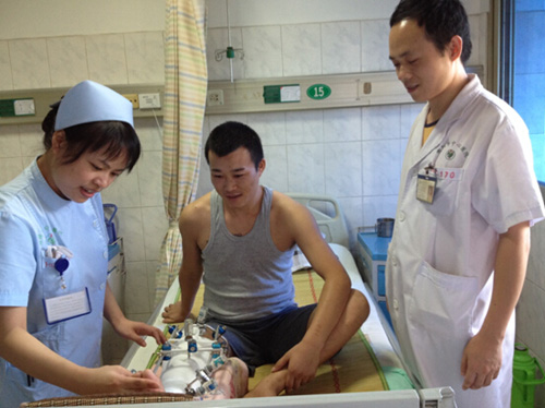重拾信心,重展笑顏 發(fā)布時(shí)間:2015年9月15日 預(yù)覽:4142次 骨科一區(qū)是創(chuàng)造奇跡的地方,是書寫生命贊歌的地方。自開科以來,我們骨科中心譜寫了多少“動(dòng)起來,站起來,笑起來”的生命奇跡。一個(gè)個(gè)病人躺著進(jìn)來,走著出去,痛苦難忍進(jìn)來,喜笑顏開回去,那一張張笑顏,一幅幅錦旗是對(duì)我們工作最好的肯定,也是對(duì)我們骨科一區(qū)最好的宣傳。 15床,歐云新,一個(gè)花樣年華的青年,被一場(chǎng)車禍導(dǎo)致右下肢毀損傷,右下肢大面積皮膚組織撕裂缺損,多處血管神經(jīng)損傷,奪去了燦爛的笑顏。入院后一系列的搶救輸血抗休克的治療,并急診行患肢開放性骨折清創(chuàng),骨折復(fù)位,外固定支架固定,部分創(chuàng)面修復(fù),VSD負(fù)壓引流術(shù),術(shù)后予消腫,補(bǔ)液改善患肢而運(yùn),水電解質(zhì)平衡,抗破、預(yù)防感染等治療,于6月30號(hào)由ICU轉(zhuǎn)回病房。 治療的痛苦與康復(fù)的漫長,使得男孩情緒特別低落。再加上家境貧寒,高昂的醫(yī)療費(fèi)用使他的情緒更加不穩(wěn)。他要么不愿意說話,要么與其家屬、醫(yī)護(hù)人員、同病房的病友拌嘴甚至惡語相向。那時(shí),我們都很怕去他的床邊做治療,不敢提及他的腿,每天都提心吊膽害怕觸及他每一根敏感的神經(jīng)。護(hù)士長一邊要我們將心比心,一邊不厭其煩多次地做床邊心理疏導(dǎo)、宣教,指導(dǎo)其循序漸進(jìn)地進(jìn)行康復(fù)功能鍛煉?!叭朔遣菽荆肽軣o情”呢!終于,他由開始的自暴自棄轉(zhuǎn)變?yōu)榉e極地配合治療。時(shí)間一天天過去,經(jīng)過多科室的協(xié)作救護(hù),他的病情也一天天好轉(zhuǎn),燦爛、陽光的笑容又回到了他年輕、帥氣的臉上。 那以后,病房里總能看見一位自信開朗的男孩拄著拐杖在做功能鍛煉?,F(xiàn)在他還天天和我們開玩笑,要我們管他叫歐大哥,甚至他還會(huì)以自己的康復(fù)經(jīng)歷來勸導(dǎo)其他病友,增強(qiáng)其他病友治愈的信心,指導(dǎo)陪護(hù)的工作。我們都親眼見證了他的康復(fù)過程,深知他那燦爛的笑容的來之不易,也衷心祝愿他能早日康復(fù),以后的人生都一帆風(fēng)順。 歐云新的故事只是我們骨科一區(qū)許許多多事例中的其中一例,他的笑容卻代表了許許多多病人康復(fù)后的心聲。盡管“天有不測(cè)風(fēng)云,人有旦夕禍?!保覀兿嘈庞辛舜蠹业氖赝嘧o(hù),前方一定是陽光燦爛,彩虹相隨。 (鄢玲俐)
