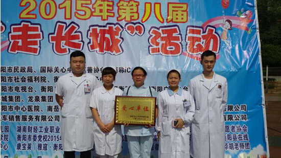 市中心醫(yī)院志愿者為愛(ài)一起“走長(zhǎng)城” 發(fā)布時(shí)間:2015年10月19日 預(yù)覽:5168次 10月17日,一個(gè)特殊的日子,由國(guó)際關(guān)心中國(guó)慈善協(xié)會(huì)(ICC)與衡陽(yáng)市社會(huì)福利院共同舉辦的“為愛(ài)行走”——ICC衡陽(yáng)2015年第八屆“走長(zhǎng)城”活動(dòng)在千噸級(jí)碼頭廣場(chǎng)舉行。市中心醫(yī)院醫(yī)療志愿服務(wù)隊(duì)與衡陽(yáng)各公益組織代表、大學(xué)生志愿者、普通群眾及外籍友人近500人參加了本次活動(dòng),該院被國(guó)際關(guān)心慈善基金會(huì)授予“愛(ài)心單位”稱號(hào)。 本次活動(dòng)旨在為廣大孤殘兒童創(chuàng)造愛(ài)、希望和機(jī)會(huì),讓更多的人認(rèn)識(shí)并了解孤殘人群,呼吁大家關(guān)心弱勢(shì)群體,同時(shí)募集更多的社會(huì)資源來(lái)幫助孤殘兒童。 活動(dòng)中,志愿者們邊走邊幫助孤殘兒童義賣他們親手制作的小物品,有的則向市民解說(shuō)“走長(zhǎng)城”的意義,并動(dòng)員市民送上關(guān)愛(ài)。本次活動(dòng)的主辦方高度贊揚(yáng)了市中心醫(yī)院長(zhǎng)期以來(lái)給予福利院孤殘兒童的關(guān)愛(ài),感謝志愿者們一直以來(lái)對(duì)孩子的關(guān)心和幫助。該院志愿者們表示,以后仍會(huì)繼續(xù)關(guān)注這群折翼的天使們,發(fā)動(dòng)更多的愛(ài)心人士加入其中,將“愛(ài)”延續(xù)并不斷擴(kuò)大! (劉 艷)