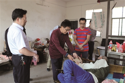市中心醫(yī)院深入耒陽開展“一進二訪”活動 發(fā)布時間:2015年10月24日 預(yù)覽:3038次 10月16日,市中心醫(yī)院院長申錦林(中)帶領(lǐng)醫(yī)院扶貧工作隊深入耒陽市肥田鎮(zhèn)肥美村開展“一進二訪”活動。65歲的村民段文勝,33年前罹患下肢脈管炎,去年,他身體癱瘓,生活起居一直在床上,暫時寄住在村部活動室。申錦林了解這些情況后,立即安排組織醫(yī)院專家前來為段文勝作進一步診斷和治療。每到一家,工作隊都會通過拉家常、揭鍋蓋、看被褥的形式,詳細了解扶貧對象和貧困戶的家庭結(jié)構(gòu)、收入來源、致貧原因和生產(chǎn)生活等情況,并為特困戶送上慰問金。(澗君 攝影報道) (來源:2015年10月23日 《衡陽晚報》)