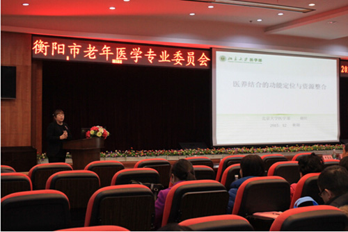 2015年12月26日,衡陽市醫(yī)學會老年醫(yī)學專業(yè)委員會2015年學術年會暨醫(yī)養(yǎng)結合高峰論壇在我院華新分院十五樓會議室隆重舉行。會議由我院副院長唐業(yè)華主持,衡陽市衛(wèi)計委副主任、副書記、我院黨委書記申惠龍作重要講話,我院副院長黃志堅、劉小平、資小龍等領導出席了會議。大會邀請了北京大學醫(yī)學部謝紅教授,湘雅二醫(yī)院蹇在金教授等多位知名專家教授擔任講者和嘉賓,衡陽市七縣(市)五區(qū)近500名醫(yī)護人員參會。