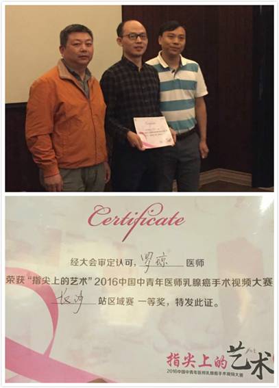 乳甲外科傳來喜訊 發(fā)布時間:2016年5月9日 預(yù)覽:2195次 我院乳甲外科羅瓊醫(yī)生在近日舉辦的“指尖上的藝術(shù)”2016中國中青年醫(yī)師乳腺癌手術(shù)視頻大賽——湖南省長沙站區(qū)域賽上榮獲一等獎。本次大賽參賽醫(yī)院涵蓋了湘雅附一、湘雅附二、湖南省腫瘤醫(yī)院、郴州市第一人民院等省內(nèi)多家知名醫(yī)院。 (李小敏)
