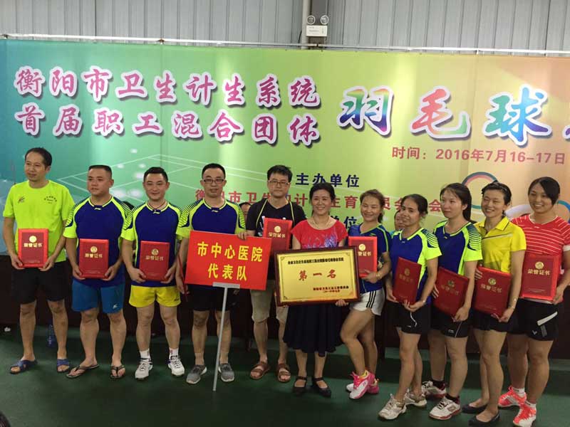 我院獲得市衛(wèi)計系統(tǒng)羽毛球賽團體第一名 發(fā)布時間:2016年7月19日 預(yù)覽:2221次 2016年7月16日至17日,衡陽市衛(wèi)生計生系統(tǒng)職工混合團體羽毛球賽在衡陽市健友羽毛球館隆重舉行,來自七縣五區(qū)的全市衛(wèi)生計生系統(tǒng)21支代表隊200余名運動員參加了混合團體、男子單打的比賽。 為確保我院代表隊在此次比賽中取得好成績,院黨委、工會對本次比賽組織工作非常重視,黨委書記申惠龍、副院長劉小平積極參加隊員訓練,工會主席蔡春香積極組隊并為隊員鼓勁。全體參賽隊員利用周日、晚上及休息時間參加訓練,他們不怕苦、不怕累,刻苦訓練;在比賽中,英勇頑強、敢于拼搏、團結(jié)協(xié)作,參賽隊員過硬的體能、高超的球藝,展現(xiàn)了衡陽市中心醫(yī)院良好的精神風貌。必勝的信念激發(fā)出昂揚的斗志,辛勤的汗水澆灌出驕人的成績。經(jīng)過二天的激烈角逐,我院代表隊獲得了衡陽市衛(wèi)生計生系統(tǒng)職工混合團體羽毛球賽團體第一名,醫(yī)保辦劉偉榮獲男子單打第三名的好成績。