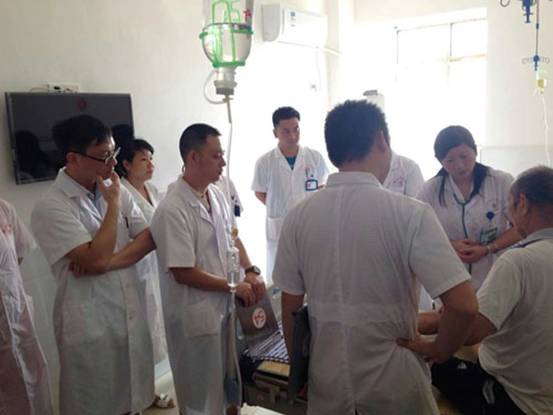 與基層手牽手 與百姓心連心 發(fā)布時(shí)間:2016年9月28日 預(yù)覽:2288次 金秋九月,秋高氣爽。值第17個(gè)世界心臟病日到來(lái)之際,為了喚起公眾對(duì)心腦血管疾病的重視,9月26日,華新內(nèi)一科在徐睫主任的帶領(lǐng)下一大早便來(lái)到了衡南縣第五人民醫(yī)院開展義診活動(dòng)。 聽說(shuō)有市里大醫(yī)院的專家來(lái)義診,前來(lái)看病、咨詢的老百姓絡(luò)繹不絕,場(chǎng)面熱鬧非凡。徐主任、謝醫(yī)生、全醫(yī)生非常耐心細(xì)致地一一給予解答、看病、開方。徐主任還到住院部給病人查房,抽取典型病例給該院醫(yī)生進(jìn)行了一次教學(xué)查房,并利用PPT給大家授課,詳細(xì)講解了冠心病的診斷、鑒別診斷、治療、用藥及最新進(jìn)展,并一一解答了他們提出的一些問題。該院醫(yī)生紛紛表示受益匪淺,并對(duì)徐睫主任的專業(yè)素養(yǎng)表示敬佩,義診活動(dòng)取得了圓滿成功。 此次活動(dòng)加強(qiáng)了跟鄉(xiāng)鎮(zhèn)醫(yī)院的交流聯(lián)絡(luò),做到了“傳幫帶教”,也讓當(dāng)?shù)乩习傩照嬲w會(huì)到衡陽(yáng)市中心醫(yī)院是“老百姓心中的醫(yī)院”。華新內(nèi)一科、內(nèi)三科自合科以來(lái),在徐睫主任和劉平主任的帶領(lǐng)下,全科人員齊心協(xié)力,毫不松懈,嚴(yán)抓醫(yī)療護(hù)理質(zhì)量,努力把科室做得更大、更專、更強(qiáng)!我們相信,我們的明天會(huì)更好! (李桂華)