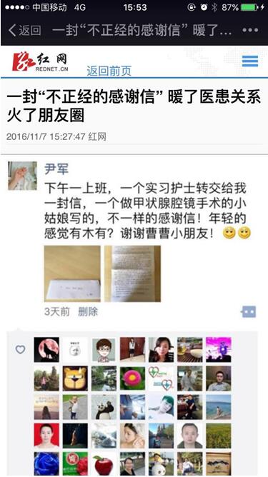 一時(shí)間,曾經(jīng)飽受詬病的“醫(yī)患關(guān)系”成為了一個(gè)溫暖的話題,這封信也拉近了醫(yī)生和病人的距離。