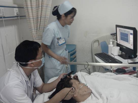 日前,我院神經(jīng)內(nèi)科率先在衡陽地區(qū)成功開展該項新技術(shù)。據(jù)研究證實,在中國人群中,顱內(nèi)動脈狹窄或閉塞較顱外動脈為多,而狹窄或閉塞的最好發(fā)部位正好位于TCD(經(jīng)顱多普勒超聲)最容易探測微栓子信號(MES)的顳骨窗口。因此,TCD監(jiān)測高?;颊叩拇竽X中動脈MES尤其適合于中國患者。