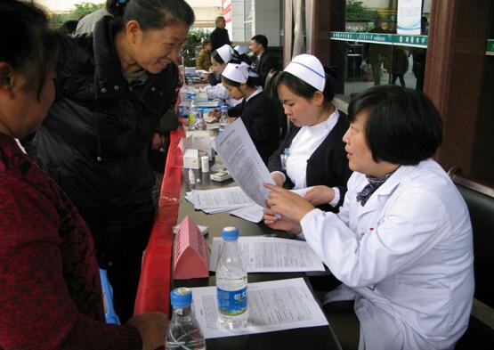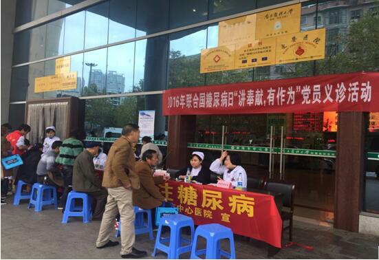 內(nèi)科支部開展“講奉獻、有作為”義診活動 發(fā)布時間:2016年11月15日 預(yù)覽:11016次 2016年11月12日上午門診大廳前,內(nèi)科支部組織部分黨員開展“兩學一做”第四專題“講奉獻、有作為”大型糖尿病日義診活動。內(nèi)分泌主任劉愛梅、腫瘤二區(qū)護士長鐘亞方、急診科護士程聰?shù)葍?nèi)科黨員對前來參加義診的市民進行糖尿病篩查活動,免費為前來咨詢的市民做糖尿病風險評估并建立健康檔案,測量血糖、血壓、身高、體重、腹圍、糖化血紅蛋白,早期篩查出糖尿病高危人群,指導糖尿病人合理就醫(yī)和規(guī)范治療,從而提高糖尿病的診斷率和治療達標率,延緩并發(fā)癥的發(fā)生,降低致殘率和病史率。 本次活動共篩查112人次,發(fā)放糖尿病資料300份,取得了良好的社會效應(yīng)。 (來臨)