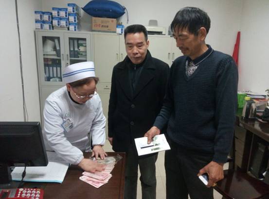 兒科王有元副主任拾重金交還失主 發(fā)布時(shí)間:2017年2月27日 預(yù)覽:2047次 2017年2月25日上午近9時(shí),一家五口急匆匆地帶著小孩來(lái)到我院門(mén)診兒科就診,接診的是副主任王有元醫(yī)師。他詢問(wèn)小孩家長(zhǎng)得知3歲的劉宇明因誤食過(guò)期小包裝的麻辣食品,引起食物中毒,后經(jīng)診斷為腸炎和脫水,身體非常虛弱。王主任接著看了幾個(gè)病人后才發(fā)現(xiàn)桌子上有一大包錢(qián),于是急忙把錢(qián)和一張?jiān)\療發(fā)票交給了門(mén)診辦公室負(fù)責(zé)人,便又回診室接診病人了。 門(mén)辦兩位負(fù)責(zé)人經(jīng)清點(diǎn)后發(fā)現(xiàn)現(xiàn)金5399元,經(jīng)對(duì)照發(fā)票上的名字,我們查找了患者家長(zhǎng)的電話號(hào)碼。好不容易聯(lián)系上已經(jīng)轉(zhuǎn)診離去的陪護(hù),聞?dòng)嵑蠡颊呒议L(zhǎng)急忙驅(qū)車(chē)趕來(lái),經(jīng)確認(rèn)后我們將錢(qián)交給了急得滿頭大汗的患者小孩外公羅齊慶手上,患兒外公激動(dòng)地表示“感謝、感謝、感謝……”,直夸醫(yī)務(wù)人員的高尚品德。 (張永明) 左邊是門(mén)診辦公室負(fù)責(zé)人李春梅,中間為兒科副主任王有元,右邊是患者小孩外公羅齊慶
