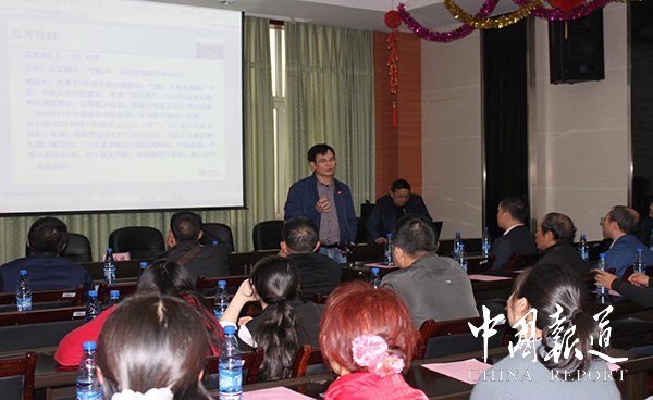 衡陽市中心醫(yī)院醫(yī)務部部長、大內(nèi)科主任、心內(nèi)科主任、胸痛中心行政總監(jiān)柏太柱講課。(陳平國 攝)