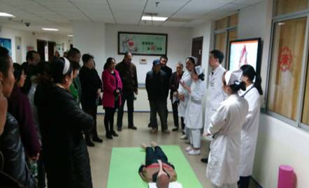 隨后,倪淑英護(hù)士長、許萍護(hù)士長、唐學(xué)文、劉一笑醫(yī)生針對冠心病發(fā)病急的特點,進(jìn)行了藥物、休息、運動等方面的知識宣教,耐心的回答了病友們咨詢的許多問題;劉蕓、周景衡也在現(xiàn)場進(jìn)行了心梗突發(fā)救治黃金120分鐘的“心肺復(fù)蘇”模擬演示。她們分步驟講解,詳細(xì)展示了在突發(fā)狀況下爭分奪秒的搶救生命的技巧,并邀請病友進(jìn)行互動,手把手的指導(dǎo)正確的按壓部位、力度及操作方法,使大家深刻的明白了急性心梗的救治是一場和死神的賽跑,時間越短,預(yù)后越佳。