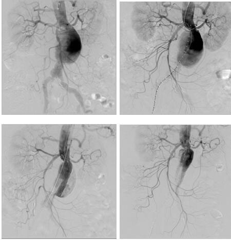 血管介入科完成我院首例腎下復(fù)雜型腹主動(dòng)脈瘤腔內(nèi)修復(fù) 發(fā)布時(shí)間:2018年1月10日 預(yù)覽:1837次 日前,血管介入科為一位患腎下復(fù)雜型腹主動(dòng)脈瘤(左腎動(dòng)脈距離瘤體僅4mm)74歲老年女性完成腎動(dòng)脈煙囪+腹主動(dòng)脈瘤覆膜支架腔內(nèi)隔絕術(shù),術(shù)后恢復(fù)良好。該患者基礎(chǔ)疾病多,已經(jīng)出現(xiàn)腹痛癥狀,腹主動(dòng)脈瘤瘤體隨時(shí)有破裂風(fēng)險(xiǎn),但左腎動(dòng)脈距離瘤體僅4mm,采取傳統(tǒng)開(kāi)放手術(shù)(腹主動(dòng)脈瘤切除+Y型人工血管置換+左腎動(dòng)脈轉(zhuǎn)流術(shù))手術(shù)創(chuàng)傷大,手術(shù)風(fēng)險(xiǎn)高,經(jīng)血管外科治療團(tuán)隊(duì)反復(fù)研究病例,并在院領(lǐng)導(dǎo)支持下,決定采取腔內(nèi)治療:先經(jīng)肱動(dòng)脈穿刺置鞘于左腎動(dòng)脈留置導(dǎo)絲,再經(jīng)雙側(cè)股動(dòng)脈上導(dǎo)絲導(dǎo)管造影定位,在施放腹主動(dòng)脈主體支架前先經(jīng)左肱動(dòng)脈留置導(dǎo)絲導(dǎo)引下于左腎動(dòng)脈置入VIABAHN支架保證左腎動(dòng)脈供血,再釋放腹主動(dòng)脈主體支架,解決了左腎動(dòng)脈距離瘤體過(guò)近的問(wèn)題。該例手術(shù)的完成,標(biāo)志著我院在腹主動(dòng)脈瘤的腔內(nèi)治療跨入省內(nèi)領(lǐng)先行列。
