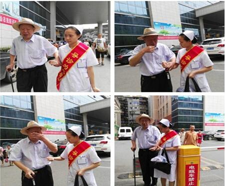 6、門診優(yōu)秀的志愿者團(tuán)隊(duì)為行動(dòng)不便的高齡爺爺提供零距離關(guān)懷、熱心幫助、全程陪同,爺爺感動(dòng)地?zé)釡I盈眶。