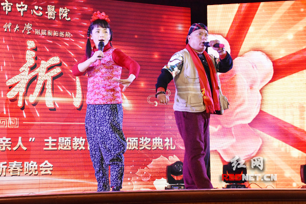 現(xiàn)場,一個個精彩紛呈的節(jié)目展現(xiàn)了醫(yī)務人員良好的精神風貌。舞蹈《共圓中國夢》表達了對祖國的祝福,院領導集體表演的歌曲聯(lián)唱《走進新時代》向現(xiàn)場醫(yī)護人員送出誠摯的祝福,歌舞串燒《相親相愛》、情景歌舞詩朗誦《永恒的誓言》催人淚下,感染了現(xiàn)場所有的觀眾,小品《歡樂健身房》爆笑不斷。晚會還邀請了衡陽人氣本土笑星“夏利坨”出演小品《傳承》,引爆全場激情,幽默逗趣的表演贏得觀眾的連連掌聲……
