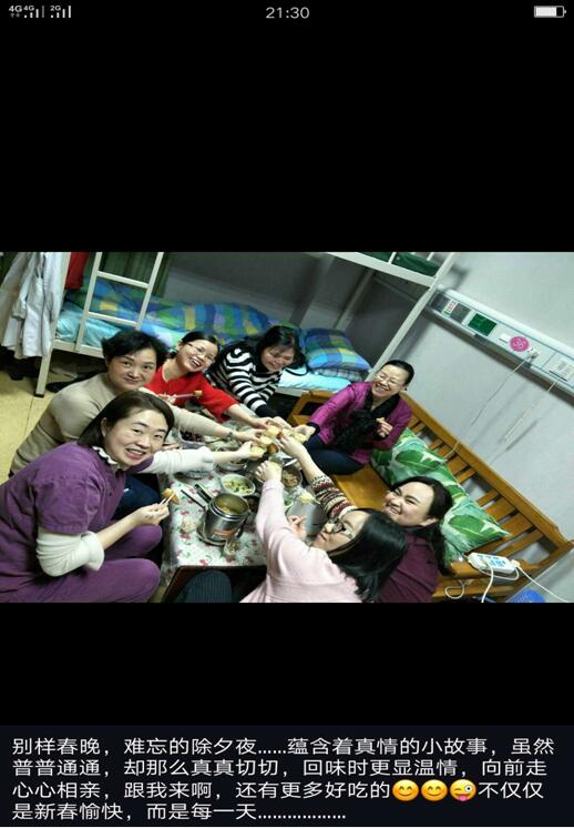 別樣春晚,難忘除夕夜,看著值班室里主任和同事們準(zhǔn)備的年夜飯,吳訓(xùn)紅醫(yī)生仍不忘說著科里產(chǎn)婦的最新動態(tài)!