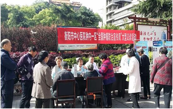 抗癌路上,你我同行 發(fā)布時(shí)間:2018年4月21日 預(yù)覽:2089次 通訊員劉詩(shī)報(bào)道:4月15日至4月21日是第二十四全國(guó)腫瘤防治宣傳周,衡陽(yáng)市中心醫(yī)院腫內(nèi)一區(qū)攜手內(nèi)科一支部、三支部,機(jī)關(guān)一支部開(kāi)展了以“科學(xué)抗癌,關(guān)愛(ài)生命-- --抗癌路上,你我同行”為主題的腫瘤防治知識(shí)宣傳及大型義診活動(dòng)。防治宣傳周一系列活動(dòng)旨在幫助大家預(yù)防腫瘤的發(fā)生,早期發(fā)現(xiàn)癌癥,盡早治療癌癥,幫助癌癥患者正確認(rèn)識(shí)癌癥,與醫(yī)院和社會(huì)各界人士攜手努力戰(zhàn)勝病魔。 上午8點(diǎn),在腫內(nèi)一區(qū)唐玉成主任的帶領(lǐng)下,醫(yī)護(hù)人員共10余人在雁峰廣場(chǎng)早早拉起“科學(xué)抗癌,關(guān)愛(ài)生命”全國(guó)腫瘤防治周主題宣傳橫幅及多幅腫瘤防治科普知識(shí)海報(bào),現(xiàn)場(chǎng)向轄區(qū)居民發(fā)放宣傳腫瘤防治知識(shí)宣傳單及資料 300余份,并為群眾提供義診、咨詢(xún)、答疑等多種形式的服務(wù)。他們向居民講解防治、抗癌的基本知識(shí),幫助大家樹(shù)立對(duì)腫瘤疾病的正確認(rèn)識(shí),引導(dǎo)居民養(yǎng)成健康的生活習(xí)慣,樹(shù)立“早發(fā)現(xiàn)、早診斷、早治療”的意識(shí)。當(dāng)天參與咨詢(xún)、義診的群眾達(dá)100余人次。 本次宣傳活動(dòng)受到廣大群眾的歡迎和好評(píng),通過(guò)此次活動(dòng)的開(kāi)展,使廣大群眾提高了防癌意識(shí),增加了科學(xué)知識(shí),產(chǎn)生了良好的社會(huì)影響。