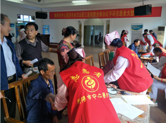 通訊員殷君發(fā)報(bào)道 4月21日,衡陽市中心醫(yī)院與水口山職工醫(yī)院聯(lián)合舉辦紅手環(huán)志愿者大型義診活動(dòng)。為常寧市水口山鎮(zhèn)近200名居民提供義診、科普講座、健康宣教、疾病普查和專業(yè)咨詢服務(wù)。
