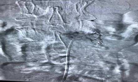 我院脊柱外科取得重大技術(shù)突破 發(fā)布時間:2018年4月28日 預(yù)覽:2342次 通訊員汪向東報道:近日,衡陽市中心醫(yī)院脊柱外科團隊迎難而上,為一例肝癌脊柱轉(zhuǎn)移患者施行腫瘤近端脊柱全切術(shù)、鈦網(wǎng)支撐、釘棒系統(tǒng)固定術(shù),手術(shù)非常成功,患者順利康復(fù)出院,此例標(biāo)志著中心醫(yī)院脊柱外科技術(shù)水平邁向新臺階。 患者劉先生,54歲,患肝癌16個月,因腰腿痛伴下肢麻木4月余入住中心醫(yī)院脊柱外科。腰椎MRI顯示腰2椎體轉(zhuǎn)移腫瘤、椎管占位、神經(jīng)根受壓,PECT顯示腫瘤單節(jié)段椎體侵犯、椎弓根骨折。手術(shù)指針明顯。為最大限度地挽救患者的神經(jīng)功能,改善其生活質(zhì)量,脊柱外科決定為其施行手術(shù)切除減壓。術(shù)前,蘇光輝、汪向東二位主任帶領(lǐng)科室技術(shù)骨干與腫瘤科尹忠文主任、血管外科涂宏主任、麻醉科段雪琴主任多次會商術(shù)前計劃,經(jīng)周密術(shù)前準(zhǔn)備后,術(shù)前當(dāng)天由血管外科先行瘤體血管栓塞術(shù),以減少術(shù)中出血,栓塞手術(shù)非常成功,手術(shù)按時進行。術(shù)中蘇光輝主任、汪向東副主任與肖華斌、陳威副主任醫(yī)師為其施行腫瘤椎體全切術(shù)。術(shù)中出血量在2000ml以內(nèi),出血量的控制超出手術(shù)團隊的預(yù)期。手術(shù)相當(dāng)順利,術(shù)后患者快速康復(fù)出院。 脊柱腫瘤手術(shù)治療一直是脊椎外科的熱點難點,也頗具爭議,因其手術(shù)創(chuàng)傷大、解剖結(jié)構(gòu)復(fù)雜,特別是難以控制的大出血常常導(dǎo)致手術(shù)失敗,甚至危及患者生命。此次脊柱外科與腫瘤內(nèi)科、血管外科、麻醉科緊密合作。采取術(shù)前栓塞,術(shù)中控制性降壓,為脊柱全切術(shù)創(chuàng)造了良好條件,也為多科合作聯(lián)合開展高難度手取得了成功經(jīng)驗。 腫瘤血管栓塞前造影圖片 腫瘤血管栓塞后造影圖片 術(shù)前腰椎MRI 圖片