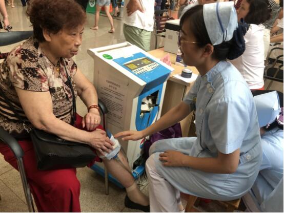 據(jù)了解,此次活動包括免費咨詢、測量血壓血糖、派發(fā)健康宣傳資料和免費藥品等,護士長秦美麗還在現(xiàn)場為患者示范使用骨創(chuàng)治療儀。此外,副院長李珍發(fā)博士及蘇光輝主任帶領大家一起跳頸肩保健操,全體醫(yī)護人員用實際行動把醫(yī)療服務、健康知識傳遞到群眾身邊。