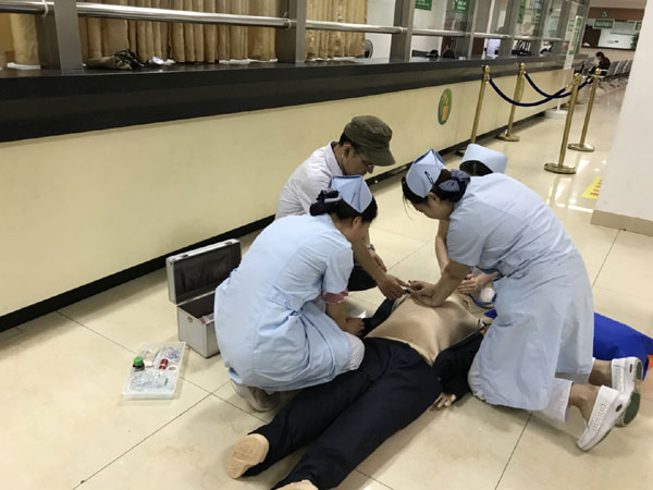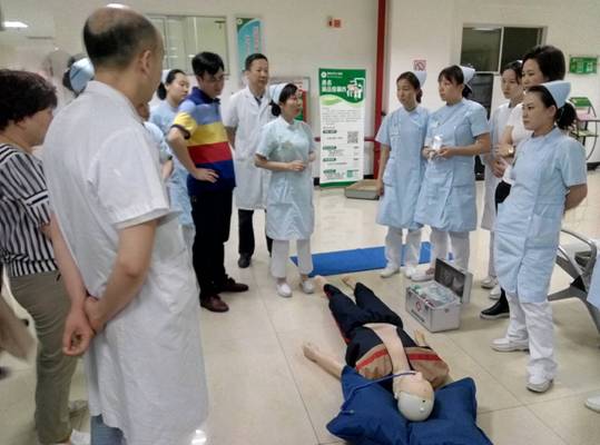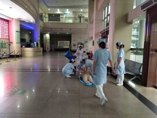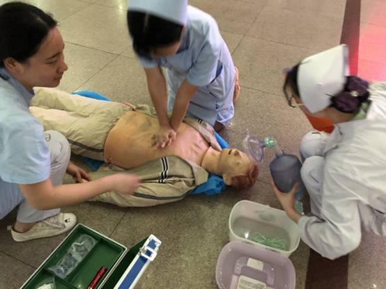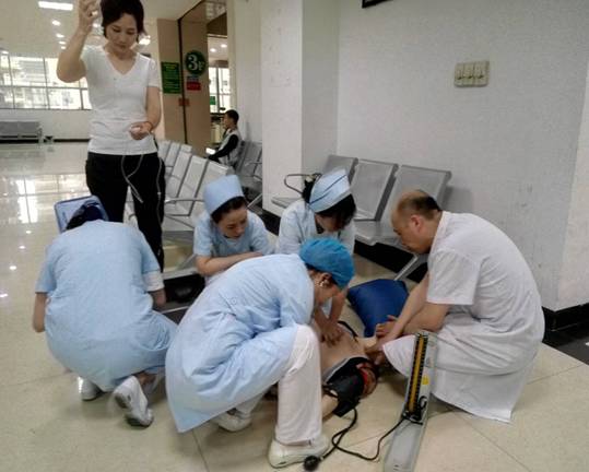 我院門診部積極開展心肺復(fù)蘇應(yīng)急演練活動 發(fā)布時間:2018年6月6日 預(yù)覽:2235次 通訊員張永明報道:為切實加強門診醫(yī)務(wù)人員應(yīng)對突發(fā)事件的快速反應(yīng)能力,6月4日下班后,門診部組織分診、導(dǎo)診護(hù)士在門診進(jìn)行心肺復(fù)蘇(CPR)應(yīng)急預(yù)案演練,將原先在六樓示教室的技能培訓(xùn)轉(zhuǎn)移到門診進(jìn)行現(xiàn)場演練,提高實戰(zhàn)的能力。 原來,早在5月30日,醫(yī)務(wù)部就在門診三樓組織了應(yīng)急演練考核,由預(yù)先安排人員冒充暈倒在座椅上的病人,再用人體模型讓醫(yī)護(hù)人員進(jìn)行實際操作,來檢測周邊經(jīng)過的醫(yī)務(wù)人員急救意識和應(yīng)對能力,當(dāng)門診脊柱外科肖華斌醫(yī)師聽到分診護(hù)士顏娜呼救時,立即趕到現(xiàn)場,通過判斷患者意識、聽呼吸、摸頸動脈搏動,發(fā)現(xiàn)患者心跳呼吸停止,馬上進(jìn)行胸外心臟按壓、開放氣道、人工呼吸等一系列搶救措施。 據(jù)悉,應(yīng)急演練重點是實地考察心肺復(fù)蘇操作技能在平時工作中在應(yīng)用,對演練過程中暴露出的一些問題進(jìn)行整改。通過演練,醫(yī)務(wù)人員突發(fā)事件后服從統(tǒng)一指揮,對整體施救流程、搶救意識明顯提高。醫(yī)護(hù)一體化心肺復(fù)蘇模擬演練有利于提高門診危重患者搶救成功率,同時也大大提升了門診醫(yī)務(wù)人員的急救能力,進(jìn)一步規(guī)范了應(yīng)急處置程序。