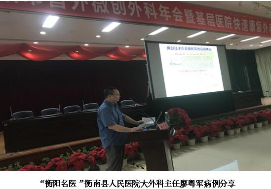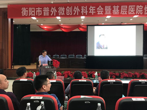 通訊員許敏報(bào)道:為促進(jìn)普外微創(chuàng)技術(shù)發(fā)展及快速康復(fù)外科理念推廣,加強(qiáng)學(xué)習(xí)和交流,6月9日-6月10日由衡陽(yáng)市醫(yī)學(xué)會(huì)主辦、衡陽(yáng)市中心醫(yī)院承辦的“衡陽(yáng)市普外微創(chuàng)外科年會(huì)暨基層醫(yī)院快速康復(fù)外科推廣會(huì)”在衡陽(yáng)市中心醫(yī)院綜合樓21樓大會(huì)議室舉行。衡陽(yáng)市衛(wèi)生計(jì)生委副主任、市醫(yī)學(xué)會(huì)會(huì)長(zhǎng)胡曉明出席會(huì)議,市中心醫(yī)院黨委書記肖友儒發(fā)表了熱情洋溢的歡迎致辭,我院副院長(zhǎng)、普外中心主任、衡陽(yáng)市普外腹腔鏡微創(chuàng)外科學(xué)組主任委員李珍發(fā)博士擔(dān)任大會(huì)主席并致開幕詞,來(lái)自省內(nèi)知名的普外科大咖、麻醉科權(quán)威及護(hù)理專家、基層醫(yī)院同道300余人齊聚一堂,共襄盛舉。