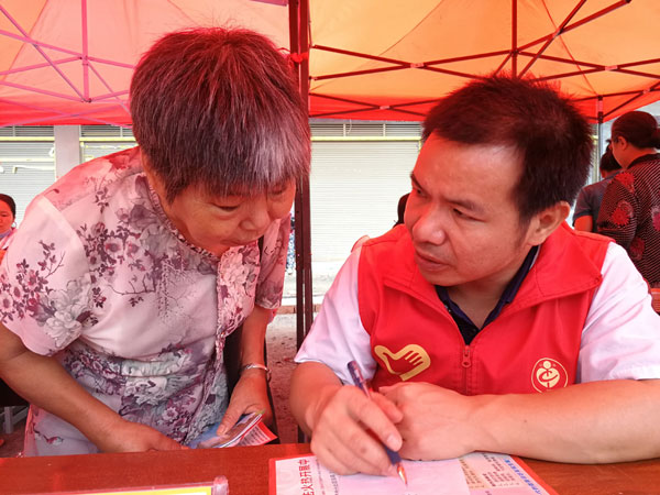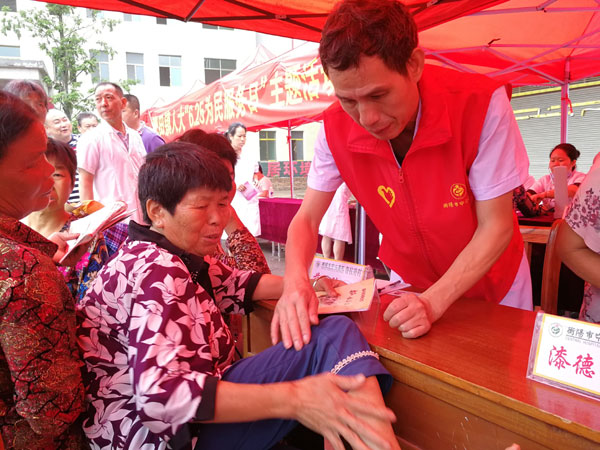 我院聯(lián)合淝田鎮(zhèn)舉行大型義診活動(dòng) 發(fā)布時(shí)間:2018年6月21日 預(yù)覽:2155次 2018年6月21日,為改善耒陽(yáng)市淝田鎮(zhèn)村民尤其是因病致貧、因病返貧老百姓的健康狀況,我院聯(lián)合耒陽(yáng)市淝田鎮(zhèn)黨委、人大、衛(wèi)生院開展健康扶貧大型義診公益活動(dòng)。 在淝田鎮(zhèn)鎮(zhèn)政府大樓前廣場(chǎng),我院副院長(zhǎng)鄒建軍帶領(lǐng)心血管內(nèi)科、神經(jīng)內(nèi)科、呼吸內(nèi)科、骨科、耳鼻咽喉科等經(jīng)驗(yàn)豐富的醫(yī)療專家現(xiàn)場(chǎng)問診、仔細(xì)檢查、健康宣教、開具處方。據(jù)統(tǒng)計(jì),活動(dòng)現(xiàn)場(chǎng)我院免費(fèi)看病近200名老百姓,還免費(fèi)發(fā)放了價(jià)值3000多元的藥品。淝田鎮(zhèn)衛(wèi)生院也免費(fèi)為老百姓量血壓、測(cè)血脂和血糖等。 為籌備這次大型義診公益活動(dòng),我院駐村扶貧工作隊(duì)前期對(duì)淝田鎮(zhèn)百姓疾病譜做了大量調(diào)研工作,統(tǒng)計(jì)分析得知當(dāng)?shù)馗哐獕?、腦血管病等慢性病人較多,將相關(guān)情況向醫(yī)院匯報(bào)后,院領(lǐng)導(dǎo)針對(duì)性地派出對(duì)應(yīng)專科醫(yī)生對(duì)癥診斷和治療,提前通知淝田鎮(zhèn)老百姓來免費(fèi)咨詢和看病,得到了當(dāng)?shù)匕傩盏臒崃覛g迎??赐瓴『?,70多歲的貧困戶蔣菊英奶奶激動(dòng)地說:“沒想到大醫(yī)院的專家會(huì)來我們這里給我們免費(fèi)看病,還發(fā)藥,真是太感謝你們啦”。 (郭偉)
