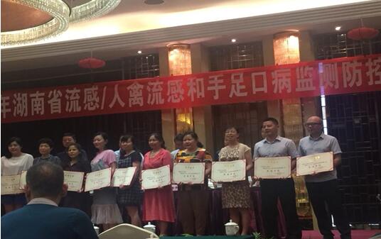 通訊員許媛媛報(bào)道:2016年至2018年湖南省23家國(guó)家級(jí)流感監(jiān)測(cè)哨點(diǎn)醫(yī)院和15家網(wǎng)絡(luò)實(shí)驗(yàn)室在各級(jí)衛(wèi)生計(jì)生行政部門(mén)的領(lǐng)導(dǎo)下,認(rèn)真組織開(kāi)展流感監(jiān)測(cè),及時(shí)報(bào)送有關(guān)信息,為我省科學(xué)研判流感、人感染H7N9流感的病毒變異及疫情趨勢(shì)發(fā)揮了重要作用。為樹(shù)立典型,弘揚(yáng)先進(jìn),湖南省衛(wèi)生計(jì)生委疾控處于6月25日在長(zhǎng)沙舉行“2016年至2018年全省流感監(jiān)測(cè)工作表彰大會(huì)”,我院被授予“湖南省2016—2018年度流感監(jiān)測(cè)工作先進(jìn)集體”,院感科陳瑛同志被授予“湖南省2016—2018年度流感監(jiān)測(cè)工作先進(jìn)個(gè)人”。