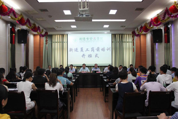 我院舉行2018年新進(jìn)員工崗前培訓(xùn)開(kāi)班式 發(fā)布時(shí)間:2018年7月17日 預(yù)覽:2847次 通訊員朱佳晶報(bào)道:7月9日上午,衡陽(yáng)市中心醫(yī)院在門診大樓21樓小會(huì)議舉行2018年新進(jìn)員工崗前培訓(xùn)開(kāi)班式。院長(zhǎng)申惠龍、黨委書記肖友儒出席儀式并發(fā)表講話,院領(lǐng)導(dǎo),黨政辦、人力資源部、醫(yī)務(wù)部、護(hù)理部負(fù)責(zé)人,以及36名新入職員工參加了開(kāi)班式。儀式由副院長(zhǎng)劉志偉主持。 會(huì)上,劉志偉對(duì)新員工的到來(lái)表示誠(chéng)摯的歡迎,并介紹了在座領(lǐng)導(dǎo),逐一認(rèn)識(shí)了每位新員工。 院長(zhǎng)申惠龍指出,入職培訓(xùn)是學(xué)校到職場(chǎng)的重要轉(zhuǎn)折點(diǎn),但短期培訓(xùn)并非一勞永逸,身為醫(yī)生、護(hù)士應(yīng)終生學(xué)習(xí)、力求進(jìn)步。在往后的工作中,面對(duì)需要幫助的病人,懷揣為病人解除病痛的信仰,保持全心全意為病人服務(wù)的初心,做柏太柱同志一樣的“中國(guó)好醫(yī)生”。面對(duì)每一個(gè)病癥,以踏實(shí)的學(xué)習(xí)態(tài)度,虛心向上級(jí)醫(yī)生、帶教老師學(xué)習(xí),不斷積累臨床經(jīng)驗(yàn),時(shí)時(shí)刻刻秉持虔誠(chéng)之心。 黨委書記肖友儒給新員工們提出三點(diǎn)建議。一是為自己能成為中心醫(yī)院的一員而自豪。中心醫(yī)院有悠久光榮的歷史、舉足輕重的地位、光明燦爛的前景、團(tuán)結(jié)奮進(jìn)的團(tuán)隊(duì),大家能成為中心醫(yī)院的一員,要感到光榮和驕傲。二是牢牢樹(shù)立立足中心醫(yī)院成才成名的偉大理想。要吸取“仁心仁術(shù)、濟(jì)世濟(jì)民”的精神營(yíng)養(yǎng),珍惜醫(yī)院重醫(yī)重才的歷史機(jī)遇,搭上醫(yī)院加快發(fā)展快車,盡快成長(zhǎng)為名醫(yī)師、名護(hù)士。三是要在發(fā)展事業(yè)的同時(shí)錘煉自己高尚完美的人格。要做一個(gè)醫(yī)德高尚的人、一個(gè)永攀醫(yī)學(xué)高峰的人、一個(gè)干凈清白的人。 副院長(zhǎng)劉志偉要求新員工們按照院長(zhǎng)、書記的要求,做一名德才兼?zhèn)涞尼t(yī)務(wù)工作者。在為期一周的培訓(xùn)中,嚴(yán)守紀(jì)律、遵守制度,認(rèn)真學(xué)習(xí)、扎實(shí)練習(xí),注意安全、順利結(jié)業(yè)。