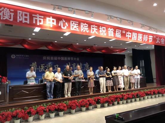我院召開“首屆中國醫(yī)師節(jié)”慶祝大會 發(fā)布時間:2018年8月20日 預(yù)覽:2522次 通訊員陸昱霖報道:為慶祝首屆中國醫(yī)師節(jié),表彰從醫(yī)30周年醫(yī)師,慰問全院醫(yī)師,大力弘揚“敬佑生命、救死扶傷、甘于奉獻(xiàn)、大愛無疆”的新時期職業(yè)精神,衡陽市中心醫(yī)院于8月17日下午在21樓大會議室召開“慶祝首屆中國醫(yī)師節(jié)”大會。院領(lǐng)導(dǎo)、中層干部、醫(yī)師共計300余人參加了大會,市衛(wèi)計委副主任鄧玉生出席會議并講話,院長申惠龍為大會致辭,院黨委書記肖友儒主持大會。 市衛(wèi)計委副主任鄧玉生,談到了自己參加此次大會的幾點感想:一、醫(yī)師,作為人民健康的“守護(hù)人”,是推動健康中國的主力軍,他們是值得全社會尊重的群體。二、隨著人們健康意識不斷加強,人民群眾在就醫(yī)過程中對于醫(yī)生期望過高,導(dǎo)致醫(yī)師們常年處在高強度工作中,作為上級部門管理者應(yīng)該理解、關(guān)懷醫(yī)師,為醫(yī)師做好后盾和服務(wù)工作。三、衡陽市中心醫(yī)院有優(yōu)秀人才隊伍,中國好醫(yī)生柏太柱、湖南好醫(yī)生廖金文、衡陽好醫(yī)生劉軍,構(gòu)建了一個“好醫(yī)生”矩陣,為全市兄弟醫(yī)院起到了良好的示范帶頭作用,同時也希望中心醫(yī)院的醫(yī)師們繼續(xù)在工作中,做到“三心兩意”——仁愛之心、敬業(yè)之心、感恩之心、責(zé)任意識、奉獻(xiàn)意識。 院長申惠龍向全院醫(yī)師同志致以節(jié)日的問候,并在講話中提到,“中國醫(yī)師節(jié)”的設(shè)立,體現(xiàn)了黨中央對衛(wèi)生健康工作者的關(guān)懷和肯定,同時也是對醫(yī)師奮發(fā)向上、嚴(yán)以自律的激勵和鞭策。衡陽市中心醫(yī)院是一家有著光榮歷史的老院、名院,醫(yī)院的發(fā)展離不開一代代“仁濟”人的薪火相傳,希望醫(yī)院全體醫(yī)師在攀登醫(yī)學(xué)高峰、攻克疑難雜癥方面敢為人先,繼續(xù)取得突破。新班子上任以來,全院齊心聚力,在人才引進(jìn)、培養(yǎng),學(xué)科建設(shè),就醫(yī)環(huán)境等方面都取得了長足地進(jìn)步,在提高醫(yī)師經(jīng)濟待遇的同時積極努力為廣大醫(yī)師構(gòu)筑一個有尊嚴(yán)、有發(fā)展、有幸福感的職業(yè)環(huán)境。并寄語全體醫(yī)師,德才兼?zhèn)涞暮冕t(yī)師是群眾所需、社會所盼,醫(yī)師們在工作中要做到重德、精術(shù)、勤研。 最后院黨委書記肖友儒感謝了全院醫(yī)師的付出和奉獻(xiàn),并勉勵全院醫(yī)生們踐行“敬佑生命、救死扶傷、甘于奉獻(xiàn),大愛無疆”十六字崇高精神在以后的工作中常懷感恩之心、敬業(yè)之心、惻隱之心、自律之心。 此次大會上,副院長劉小平宣讀了衡陽市中心醫(yī)院從醫(yī)30年以上專家名單,全體院領(lǐng)導(dǎo)為從醫(yī)30年以上專家頒發(fā)獎杯。院長申惠龍帶領(lǐng)全體人員重溫醫(yī)生誓言,“衡陽好醫(yī)生”劉軍作為醫(yī)師代表也上臺做了發(fā)言。