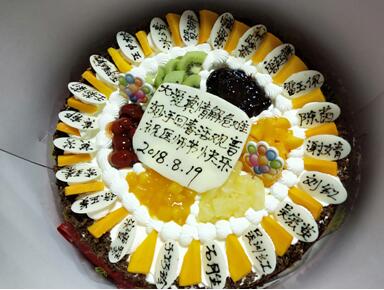 陽護士長帶領(lǐng)我們護士姐妹們,一起說,“大愛精誠解危難,妙手回春活觀音,祝全體醫(yī)師節(jié)日快樂”,表達我們對醫(yī)生最真摯的祝福,接著護士代表們向全體醫(yī)師獻花,大家一起拍照留戀,四個護士長一起推著蛋糕車從孕婦學校出來,一個刻著所有醫(yī)師名字的蛋糕呈現(xiàn)在大家的眼前。