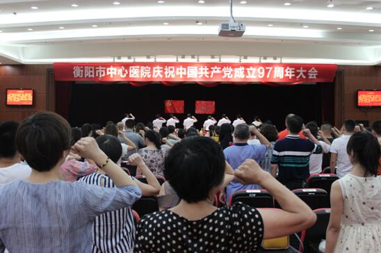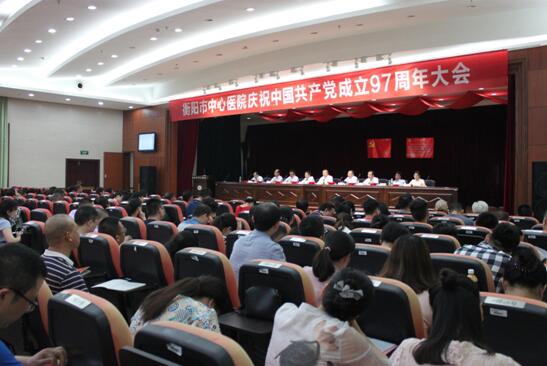 通訊員唐冠群報(bào)道:為慶祝中國(guó)共產(chǎn)黨成立97周年,進(jìn)一步加強(qiáng)醫(yī)院黨支部及黨員隊(duì)伍建設(shè),激勵(lì)廣大黨員干部堅(jiān)定理想信念,激發(fā)全院黨員“不忘初心、牢記使命”的責(zé)任擔(dān)當(dāng),形成最強(qiáng)執(zhí)行、凝心聚力、積極向上的濃厚氛圍,6月29日,衡陽(yáng)市中心醫(yī)院慶祝中國(guó)共產(chǎn)黨建黨97周年大會(huì)在莊嚴(yán)的國(guó)歌聲中隆重開(kāi)幕。全體院黨委委員、全體在職黨員、退休支部支委近300人參加了會(huì)議,院黨委書(shū)記肖友儒發(fā)表講話(huà)并講黨課,院長(zhǎng)、黨委副書(shū)記申惠龍主持會(huì)議。